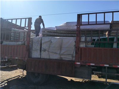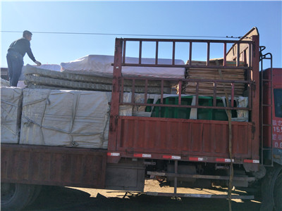 發往四川的仿液壓籃球架已經裝車完畢,液壓籃球架帶保護套,實際師傅正在封車,一路平安